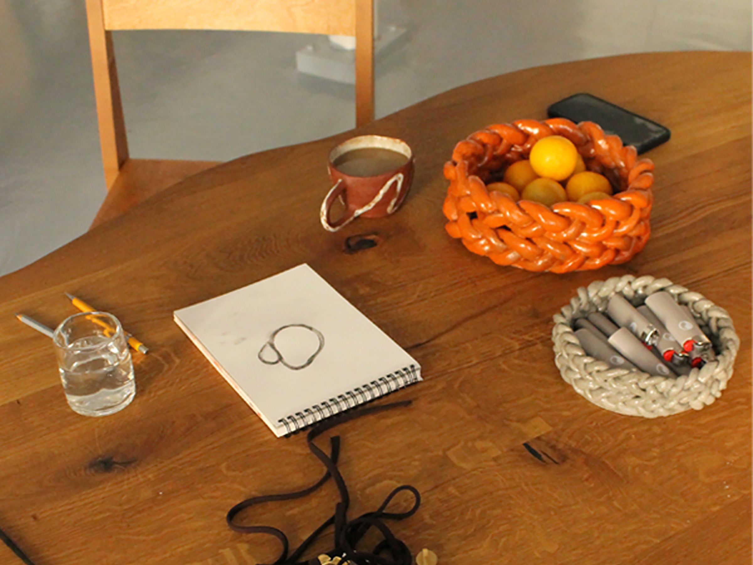 · When I find myself either alone at my workspace, preferably evening/night time, with music, clay, drawings and other creative projects (I specially like having more than one thing going at the same