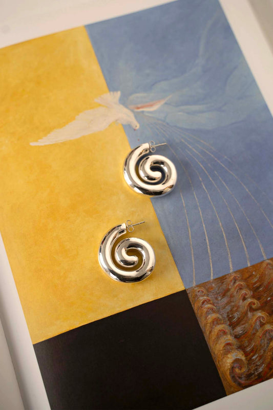 Puffy Spiral Earrings, Silver