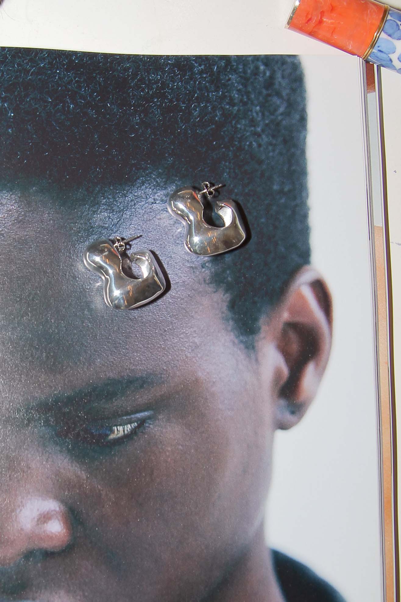 Chunky square-shaped hoops, designed in collaboration with sculptor and designer Simone Bodmer-Turner. Post back closure. Polished finish.
