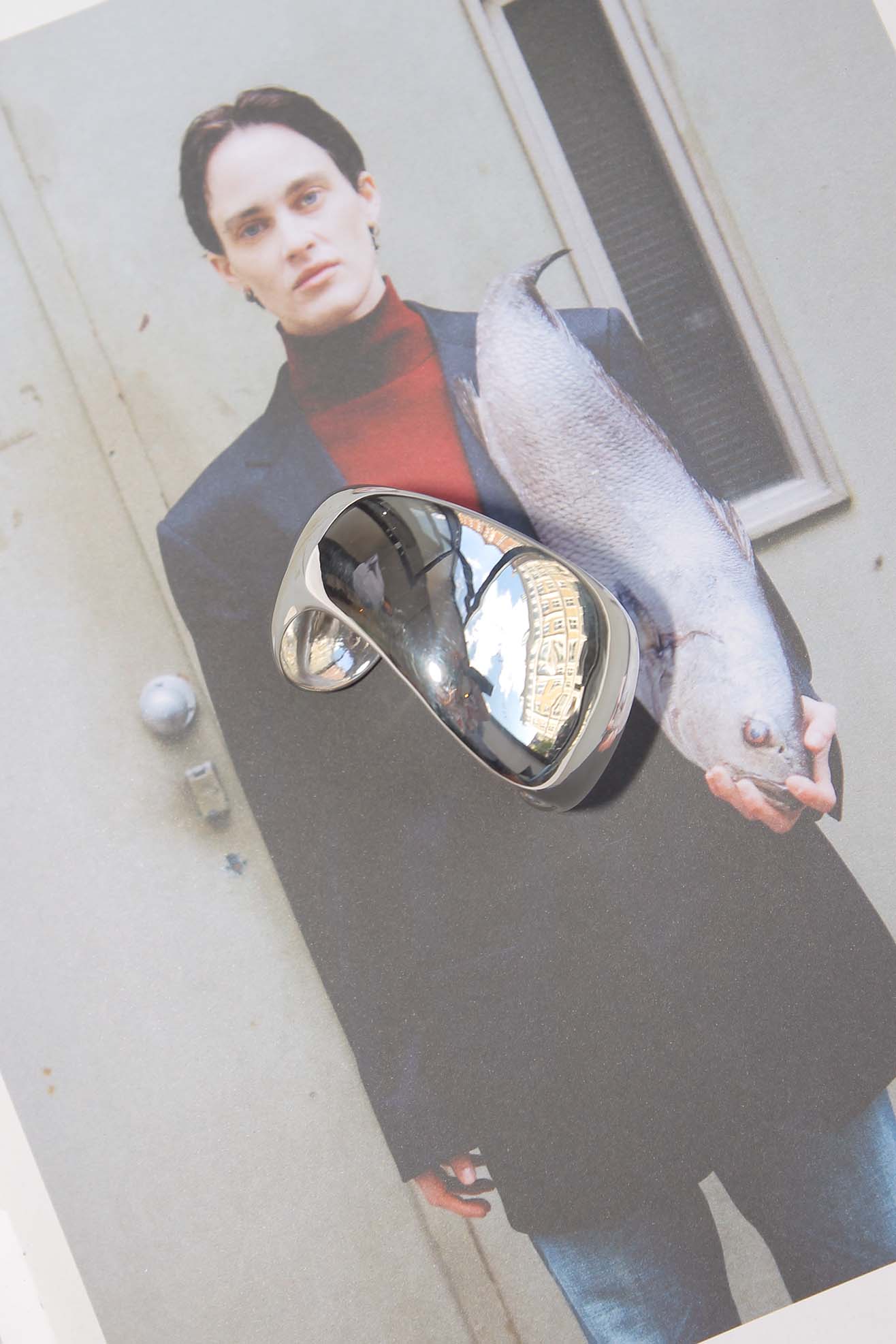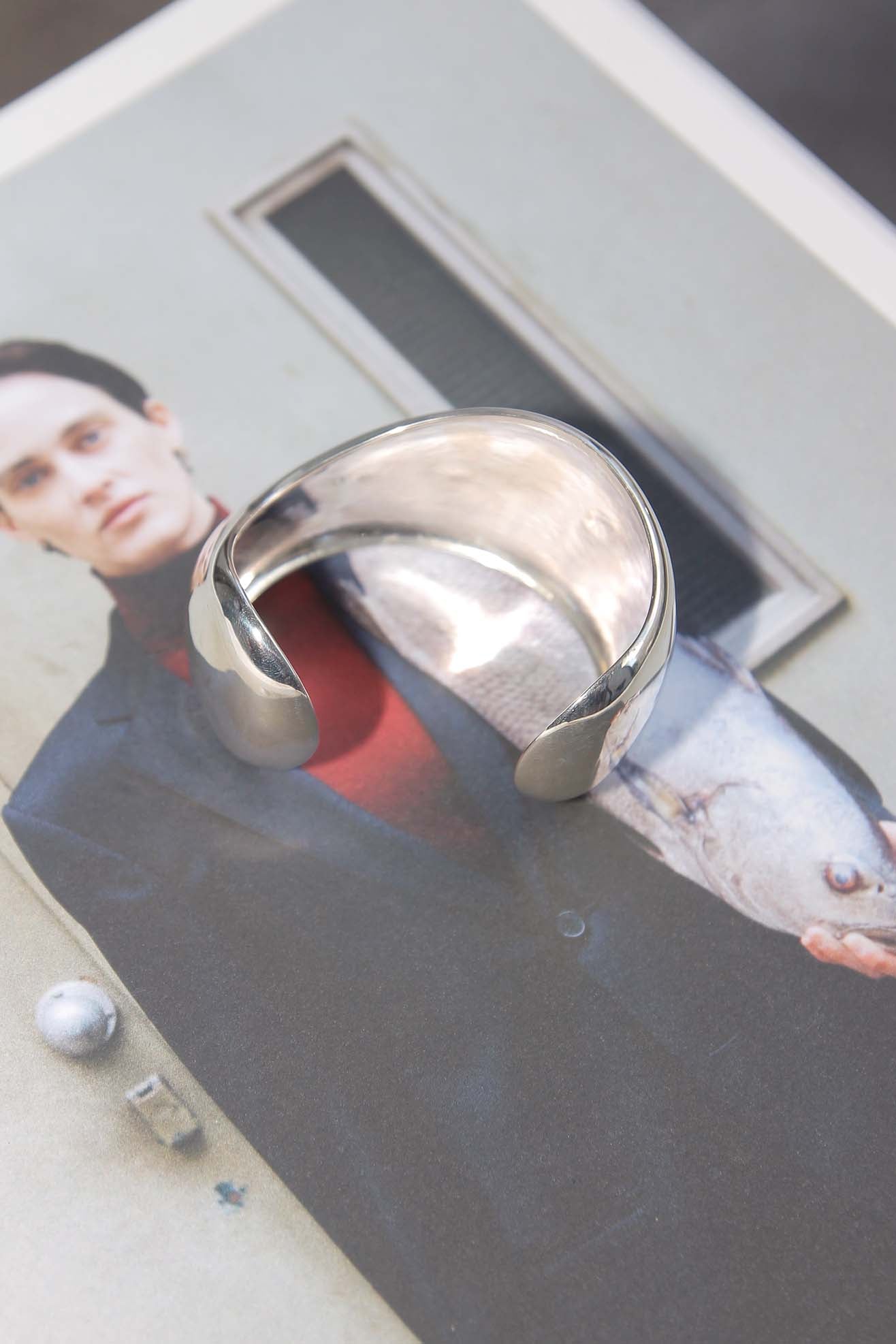 Organic shaped statement cuff bracelet in Sterling Silver. Slightly adjustable. One size fits most. Polished finish