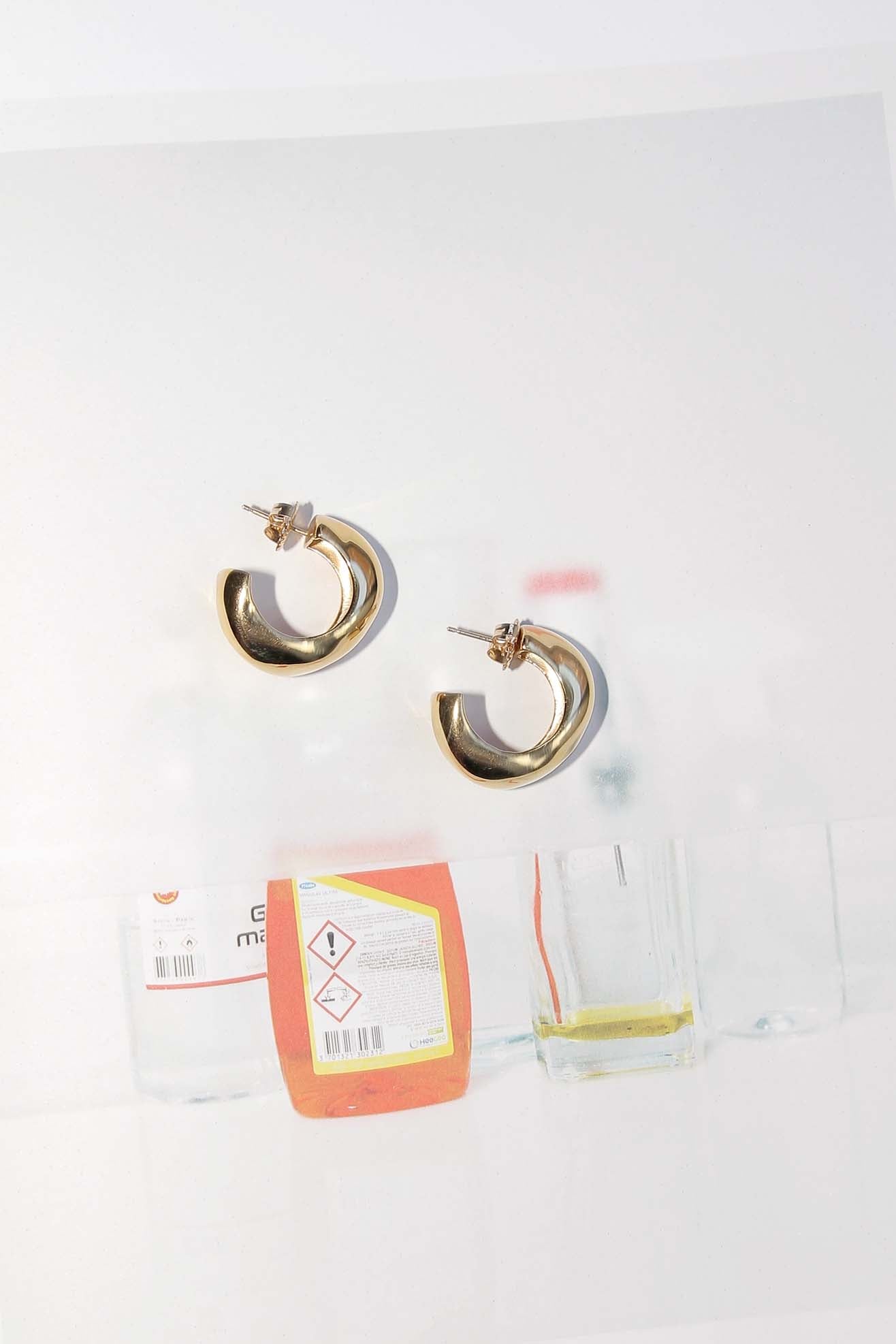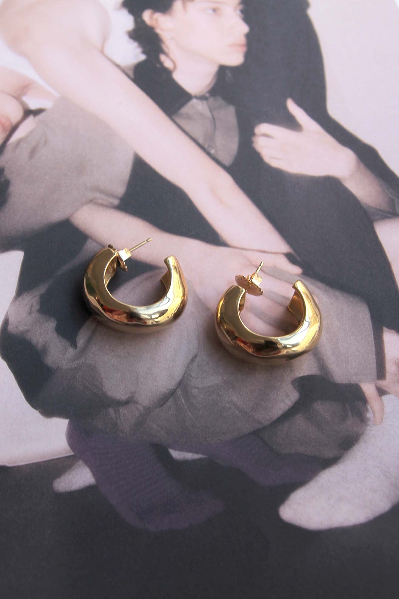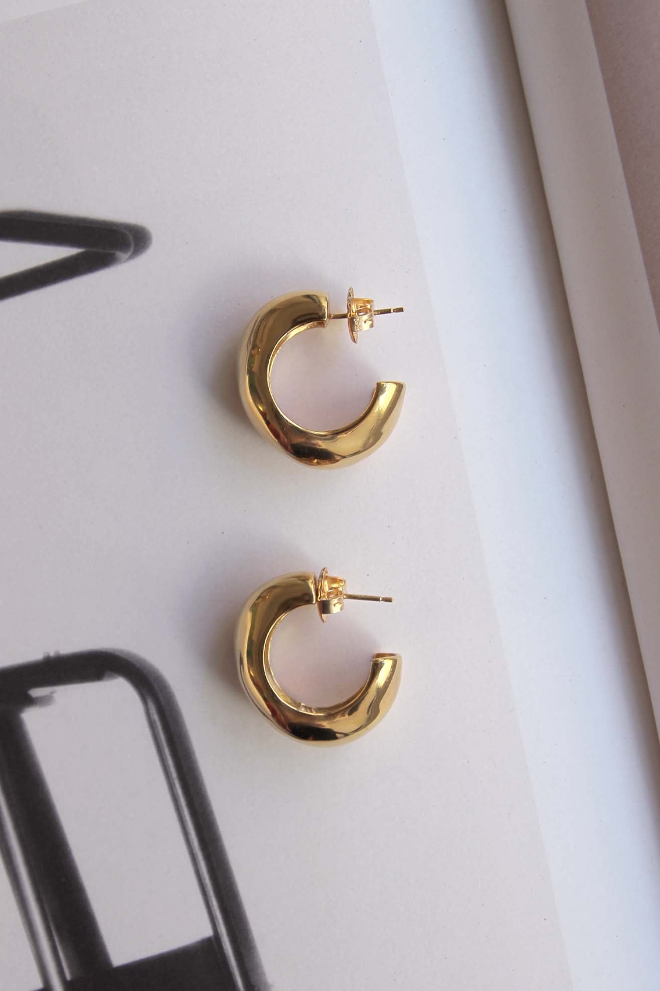 Chunky medium size hoops, made of 18k gold vermeil. Post back closure. Polished finish.