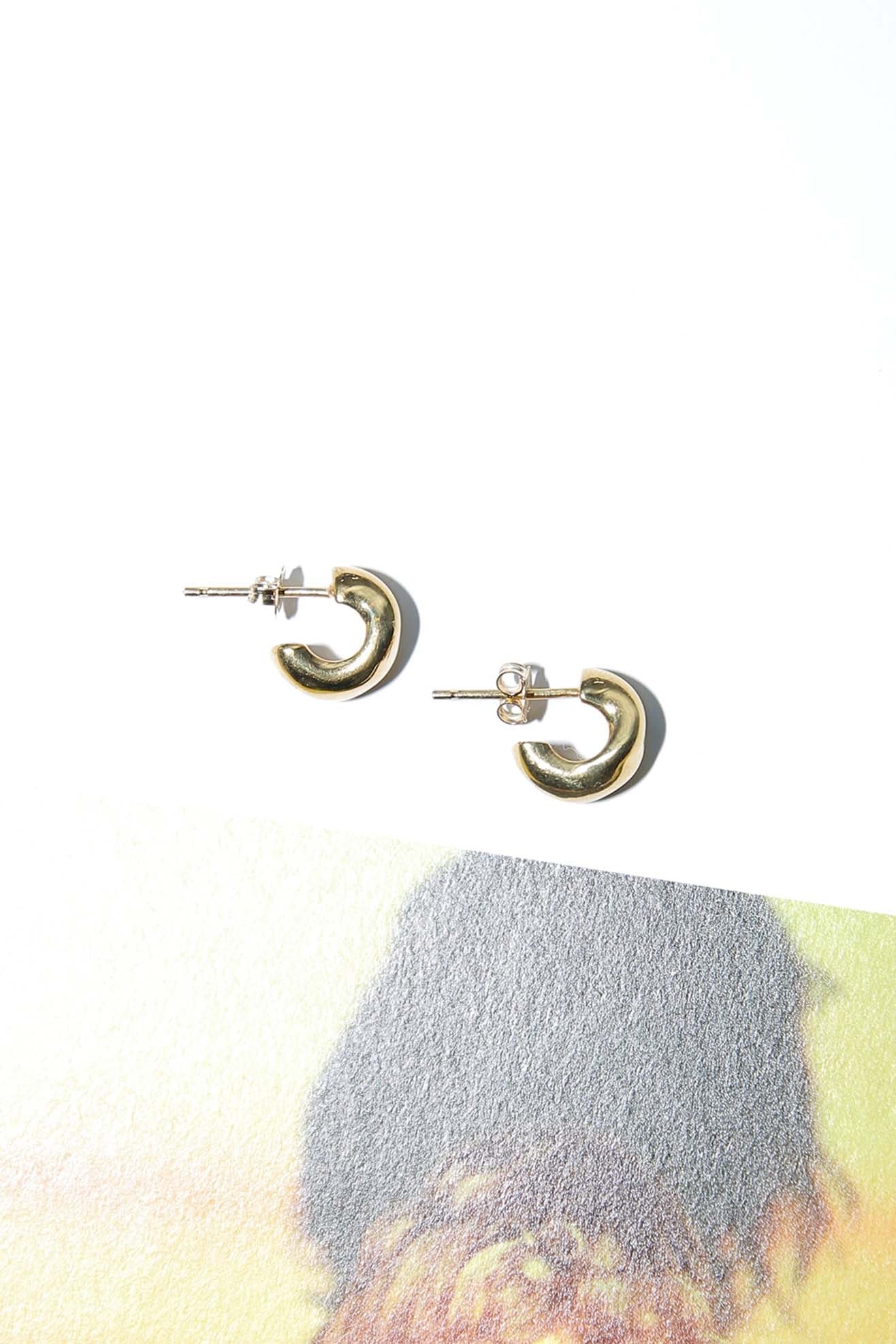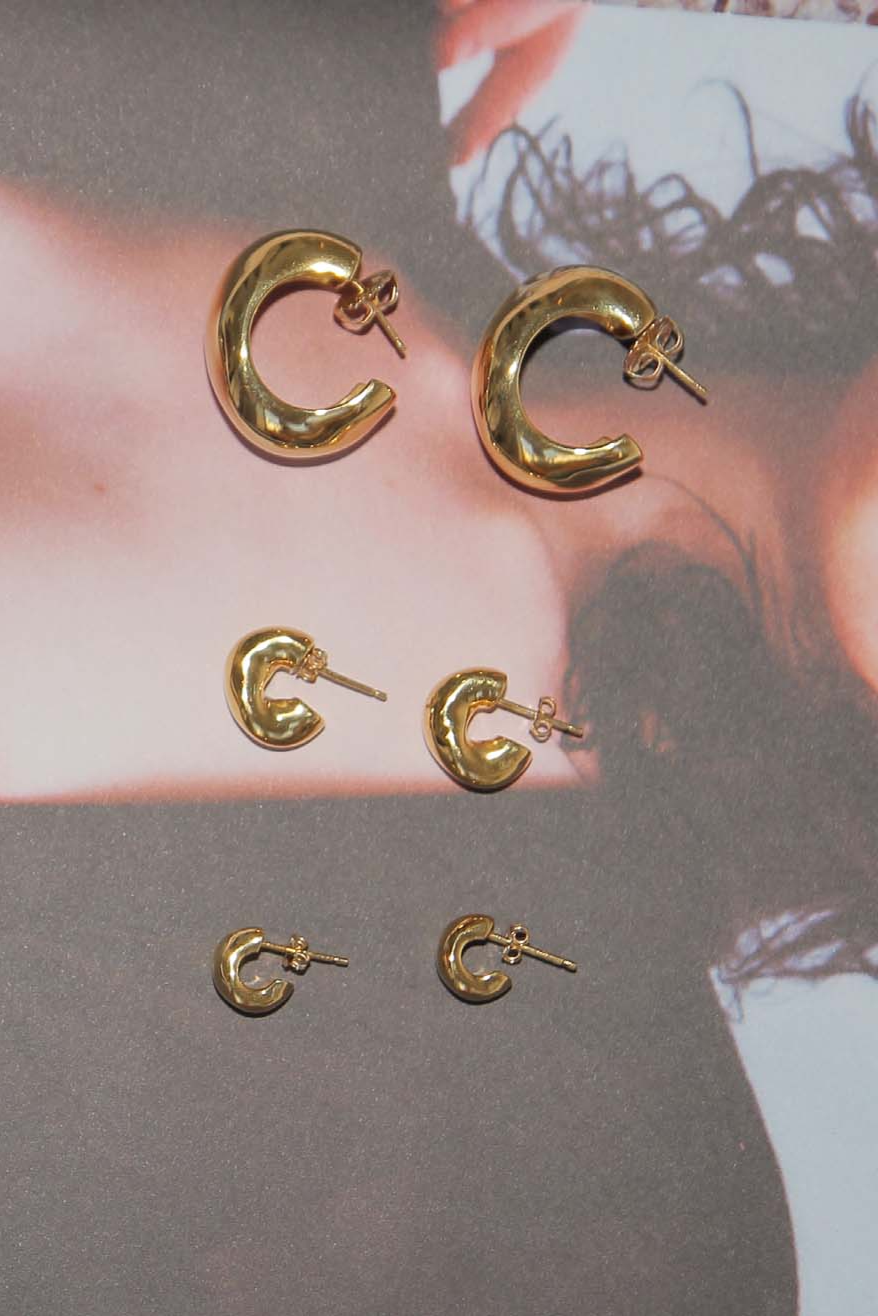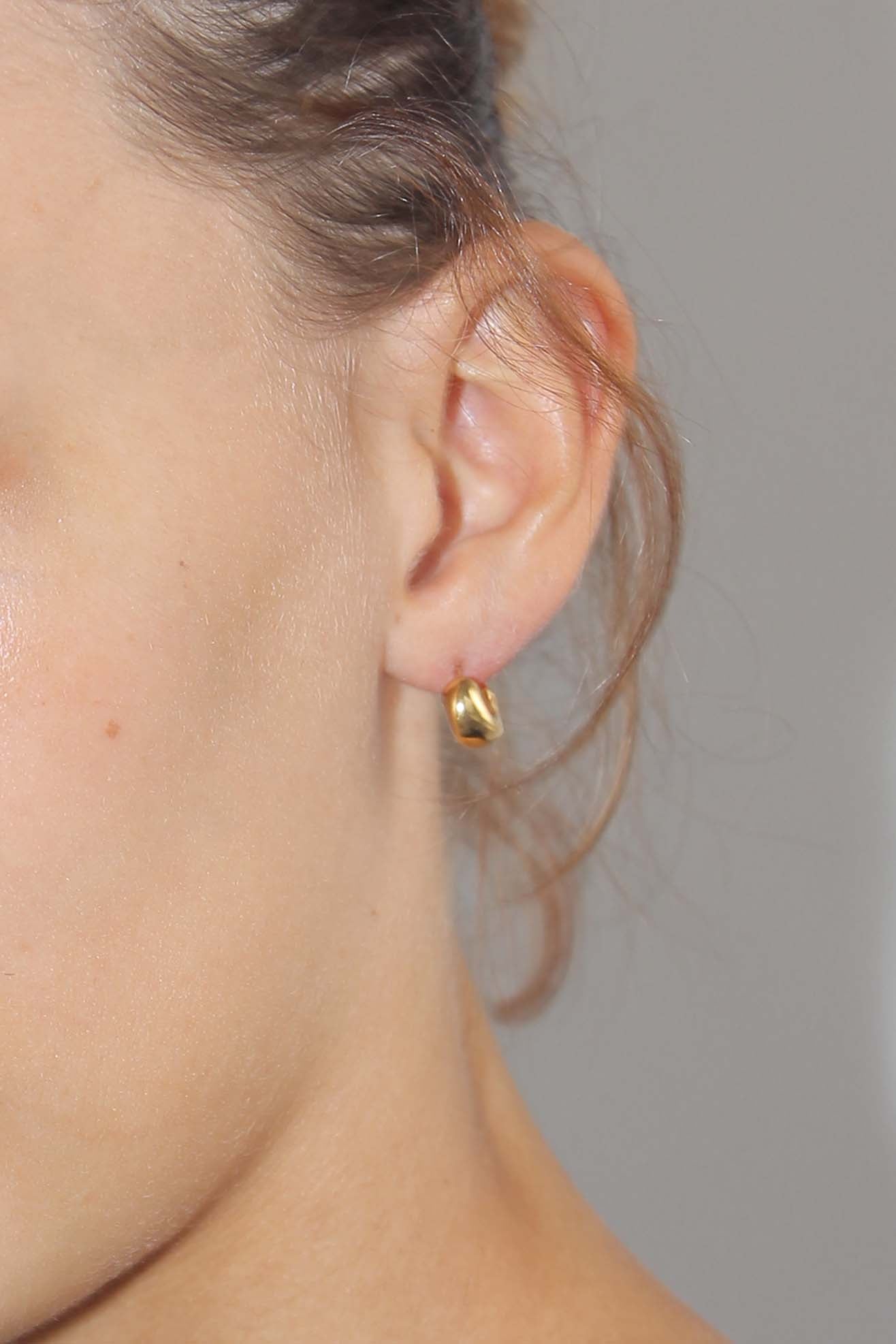Organic shaped mini huggie hoops in 18k Gold Vermeil. The smallest hoops in Dahlia and Celia series. Post back closure. Polished finish.