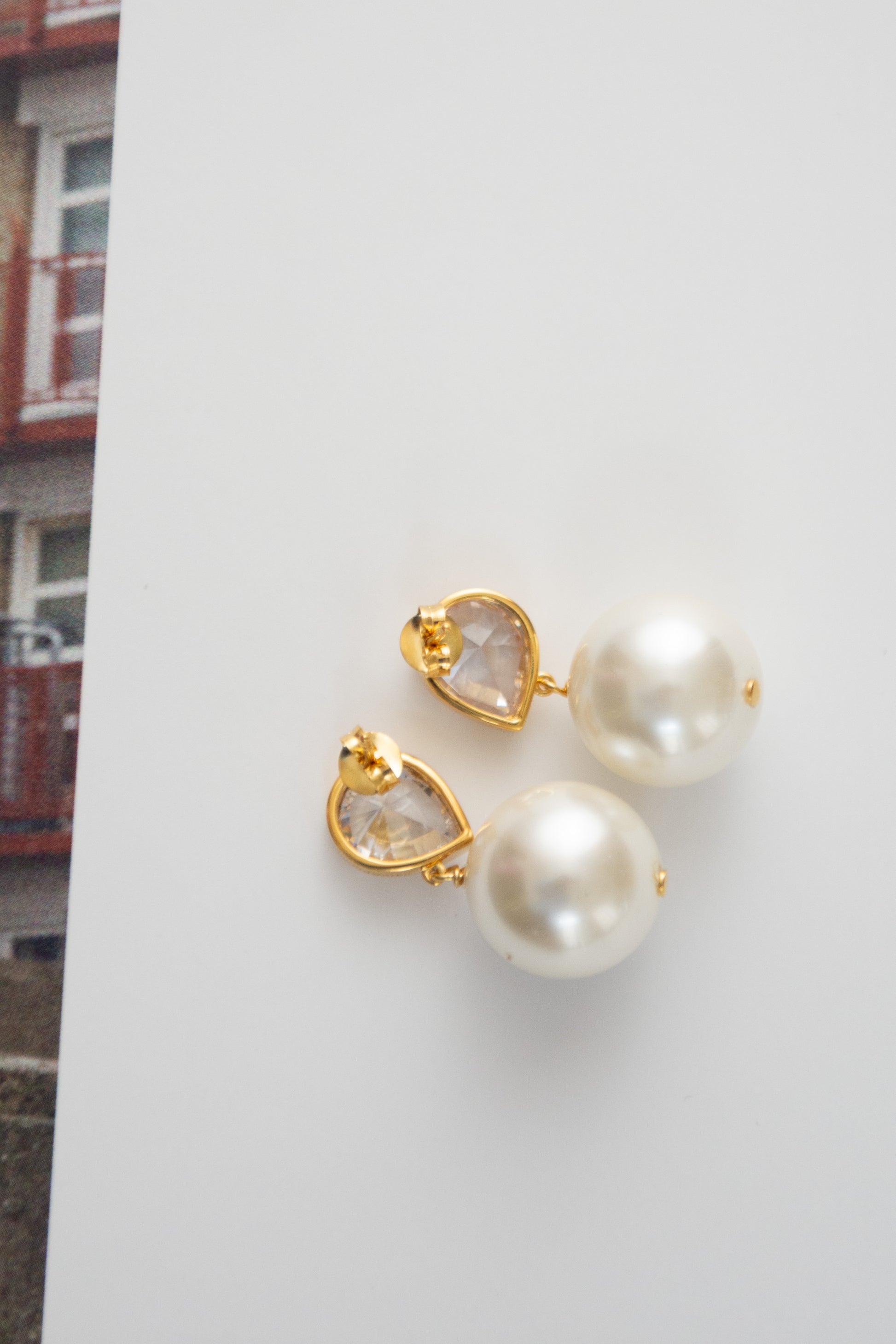 Pearl earrings with Zirconia drop. Post back for pierced ears. Recycled gold vermeil details throughout.