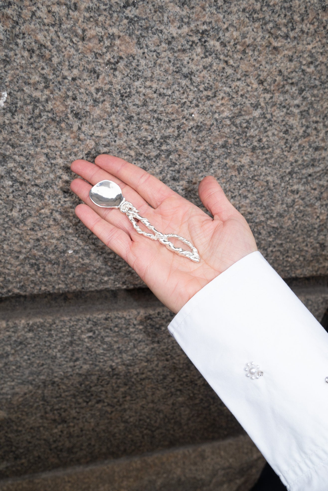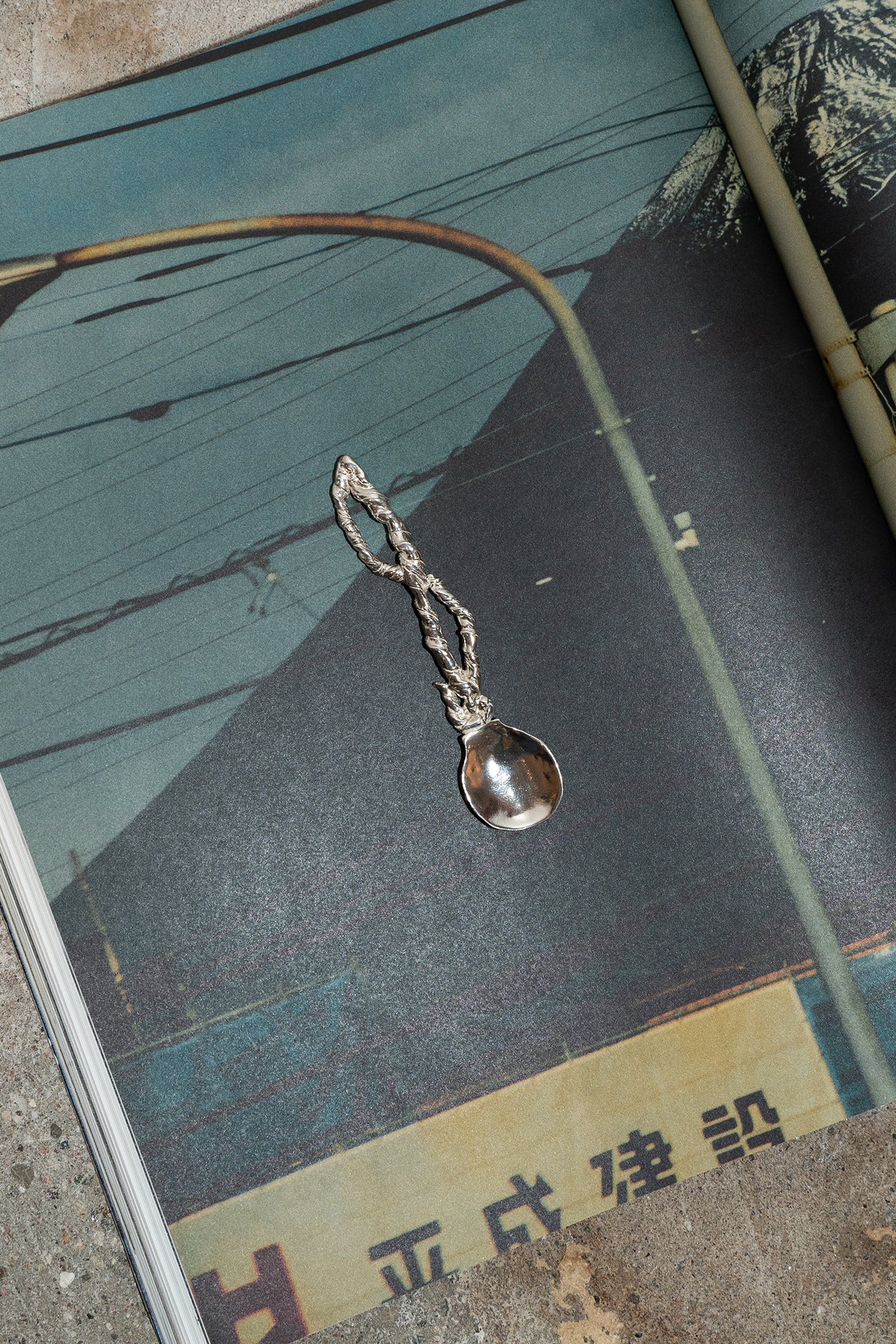 Authentic small tea spoon with a twisted handle in recycle sterling Silver.