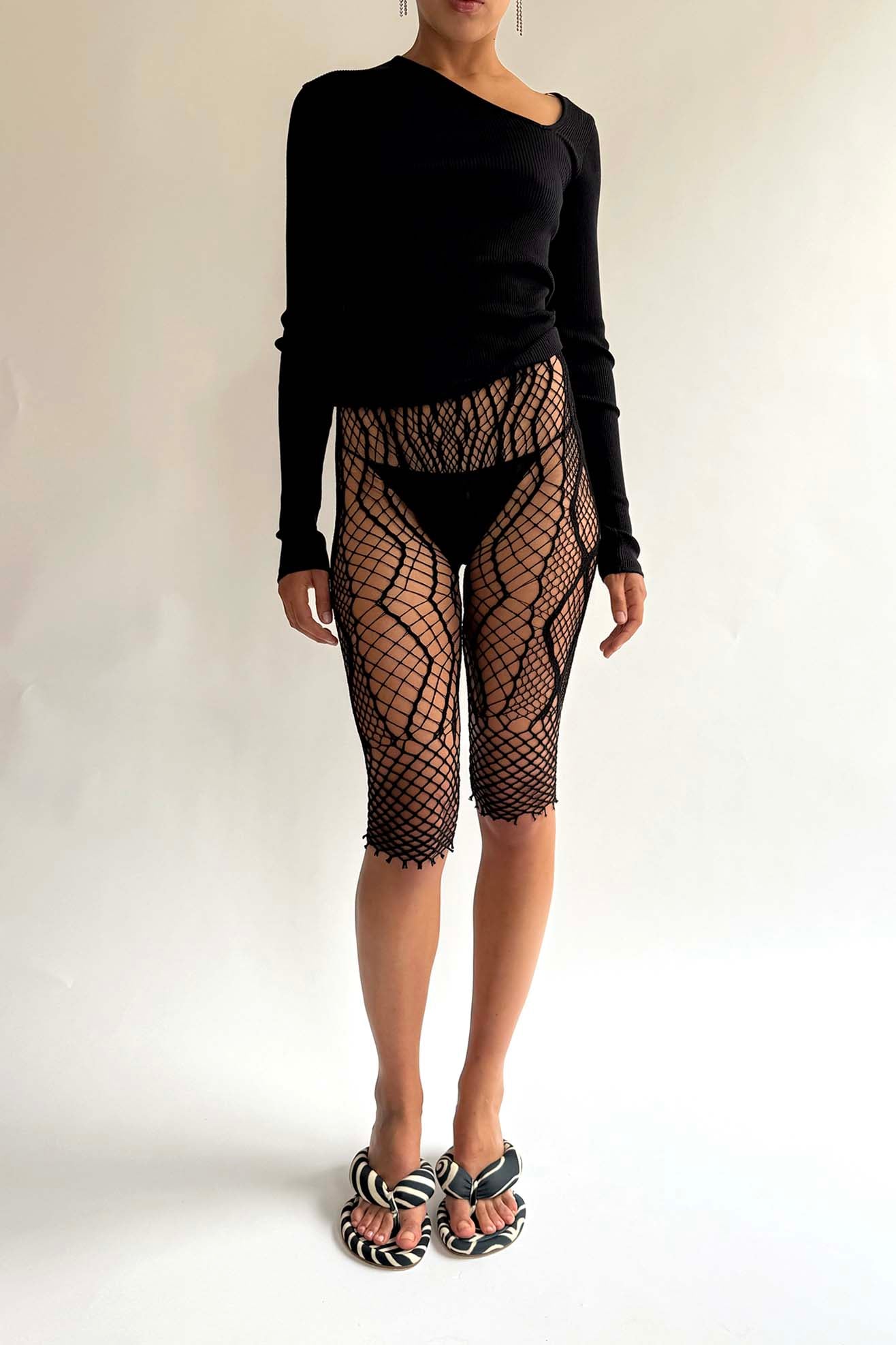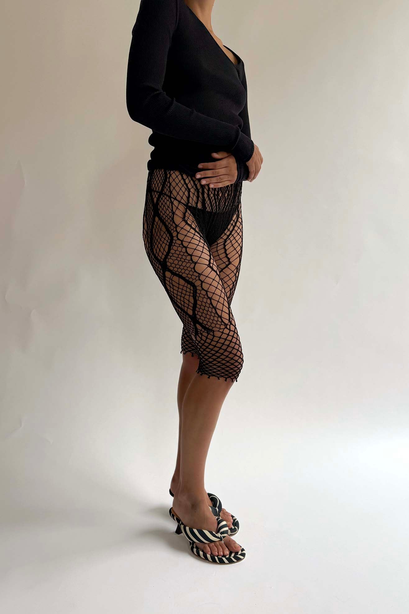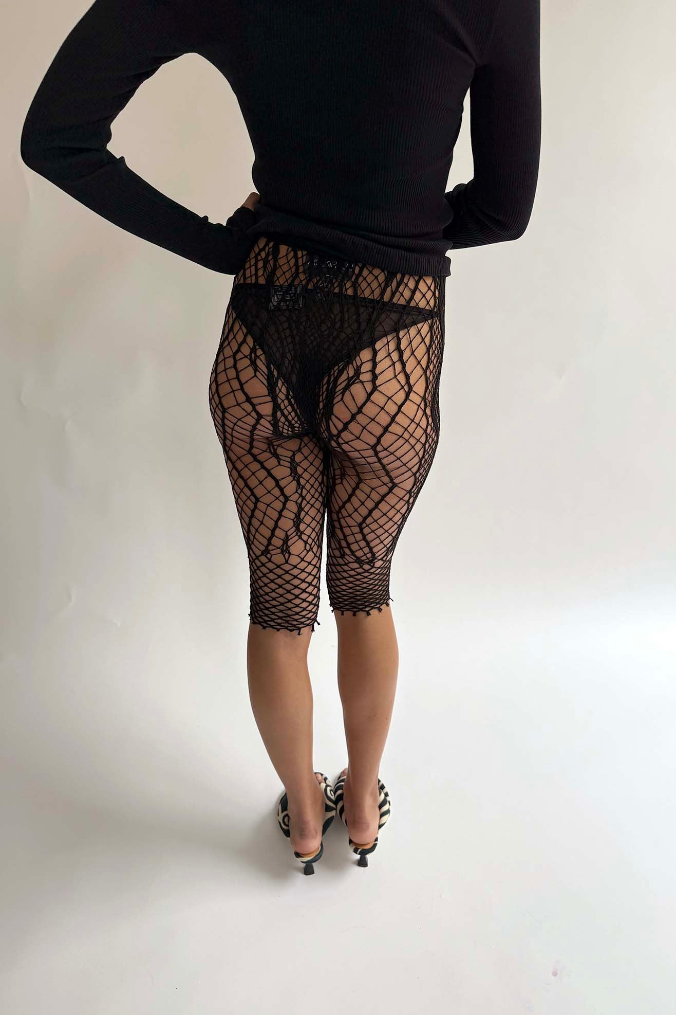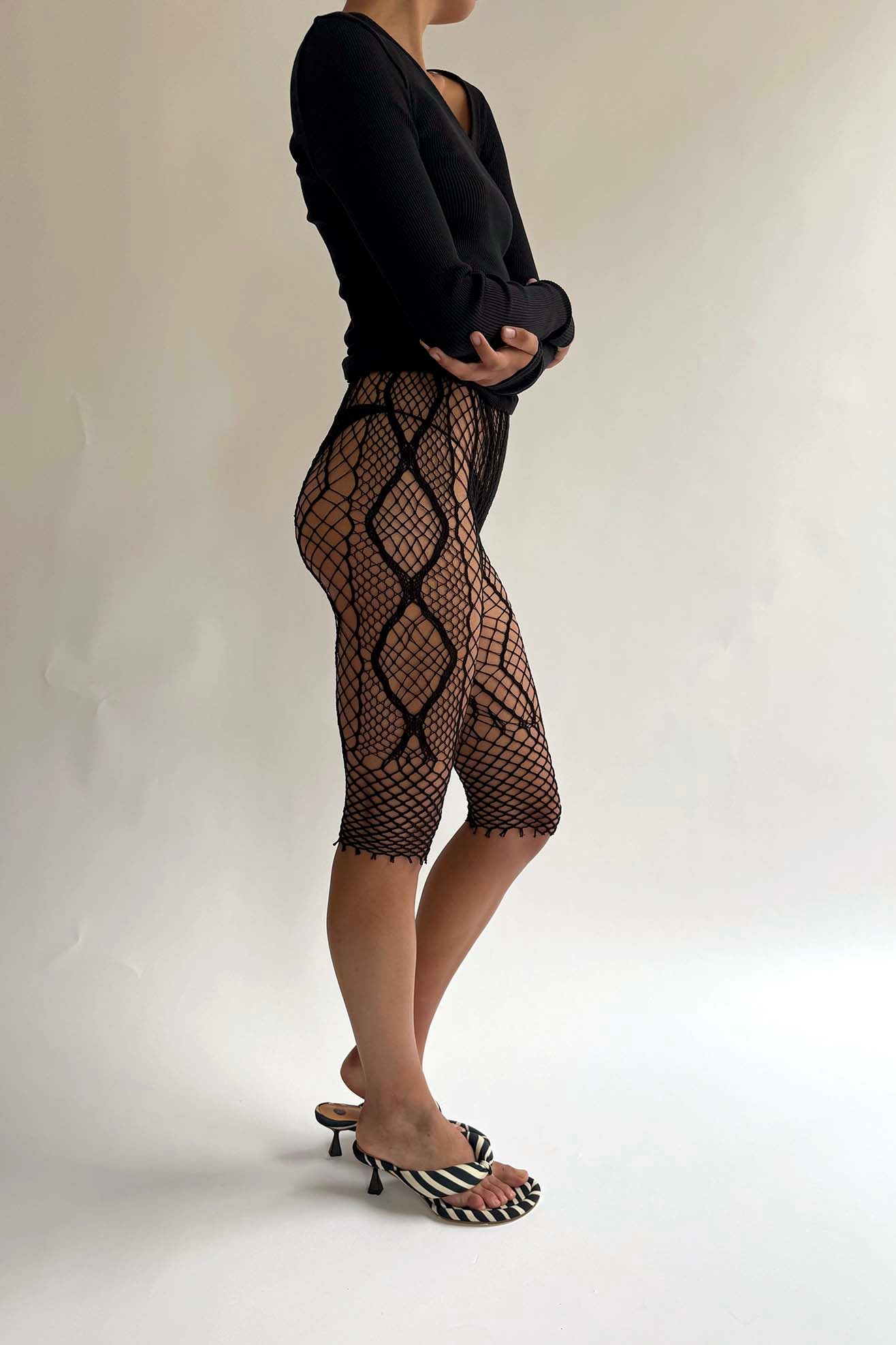 Capri leggings in original Euchronia pattern. Made in black Torchon lace in Ashikaga City, Japan. Elastic waistband. The high elasticity, makes it comfortable to wear.