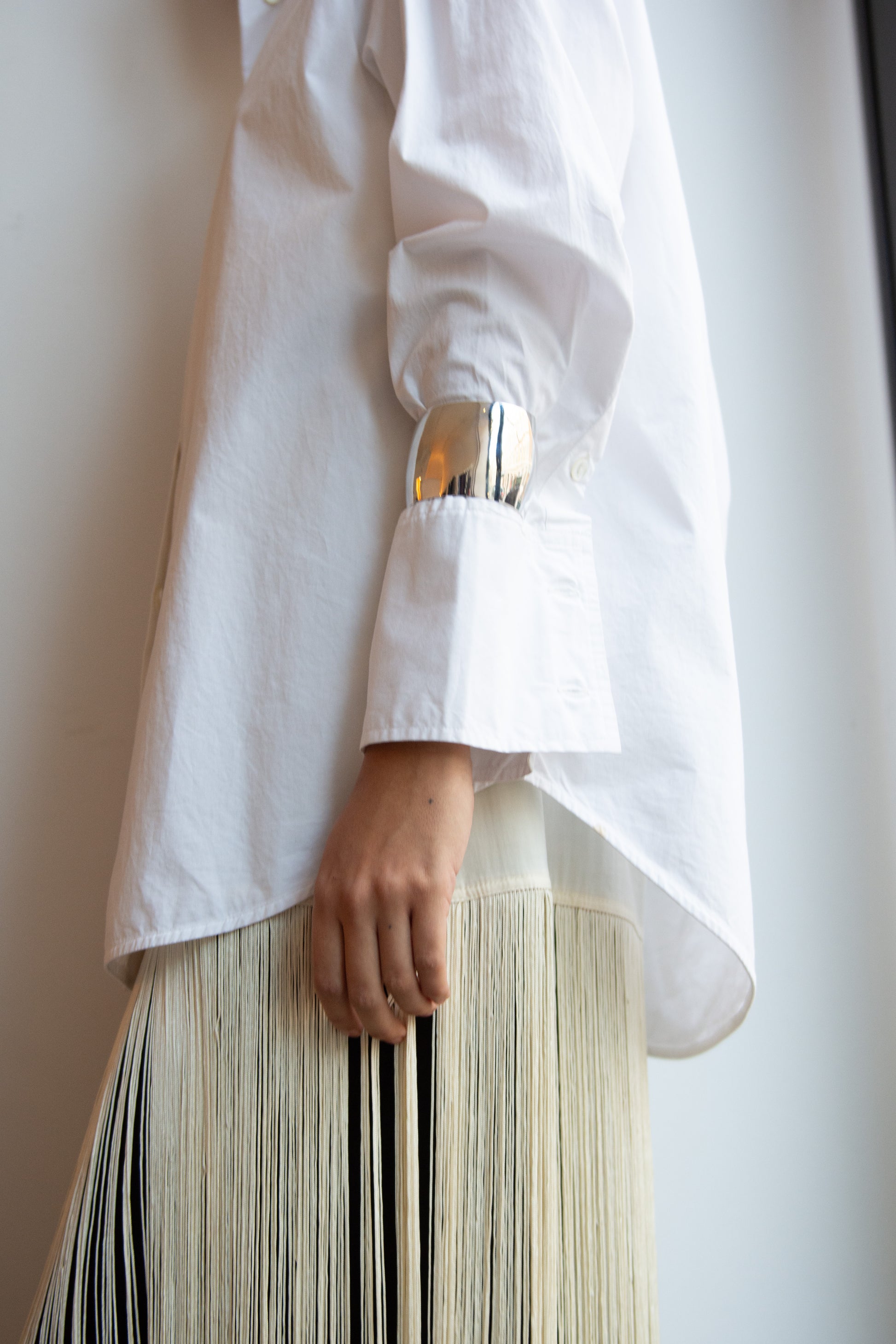 Handcrafted cuff bracelet made from solid, polished sterling silver. Smooth, curved silhouette with a high-shine reflective finish. Open-back design for easy placement and a secure, comfortable fit. Slips on to be worn.