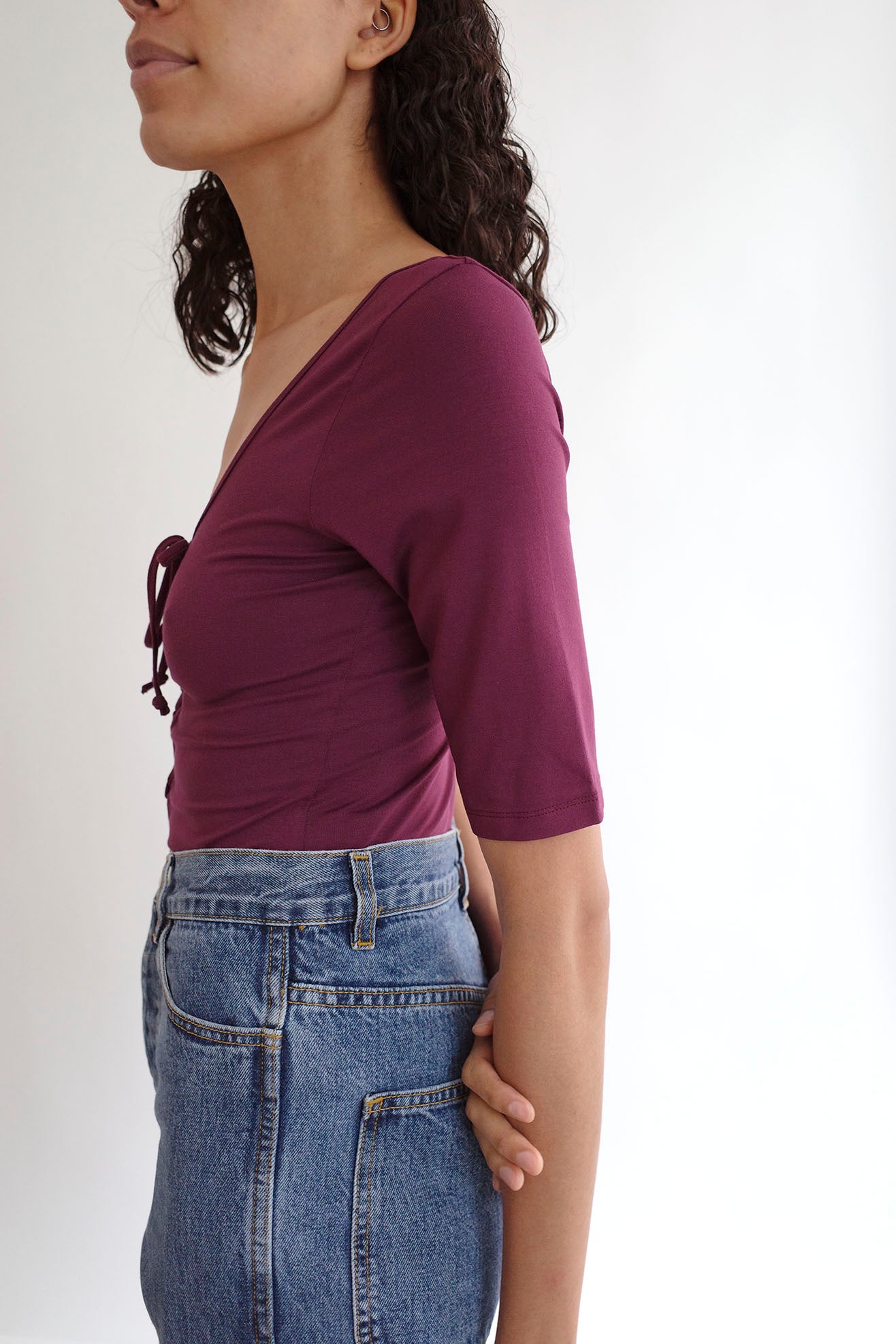Michelle wears size S. Runs true to size. High stretch. Interchangeable lacing at front with 2 options: Self fabric & Blue satin cording. Full coverage in seat. Under snap closure.