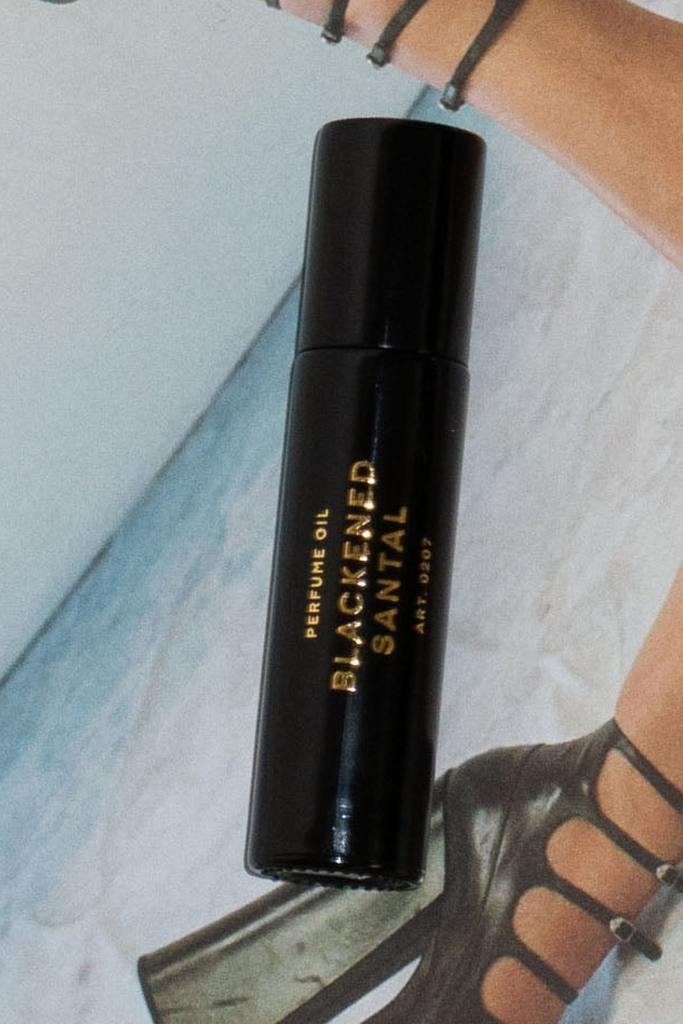 The iconic 'Black Santal' scent in a roll-on perfumed oil. Alcohol-free formulation. Long lasting fragrance. Notes of Sandalwood, Cedarwood, Olibanum, Cardamom, Iris and Vanilla. Crafted with precious essential oils and coconut oil.