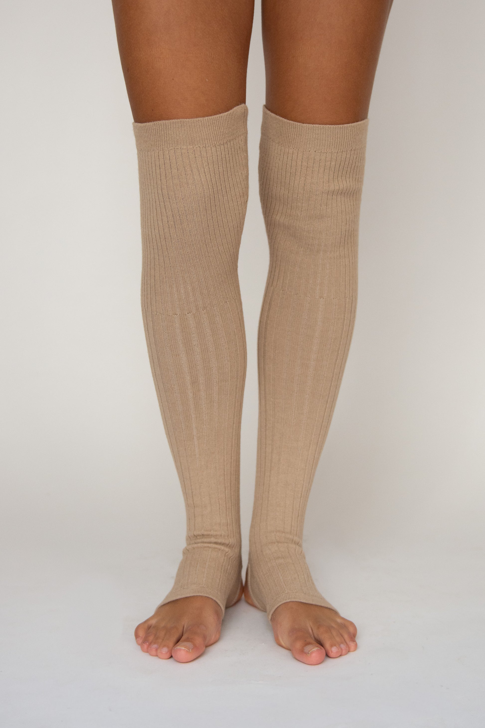 Beige ribbed low-stirrup socks in 100% luxurious Baby Alpaca. Soft cuff.