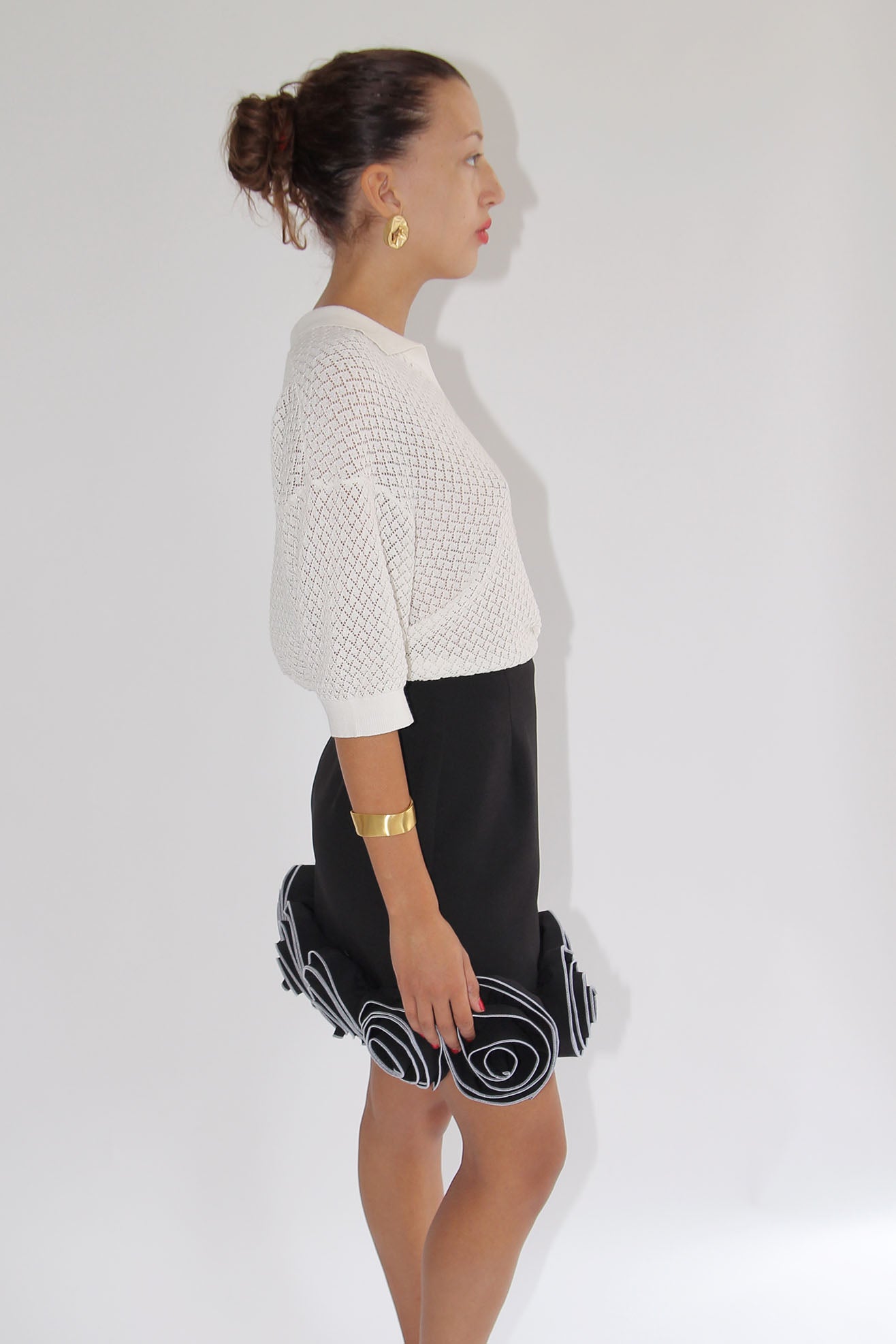 Cream polo shirt in knit. V-neck. Short wide sleeves. 100% Wool.