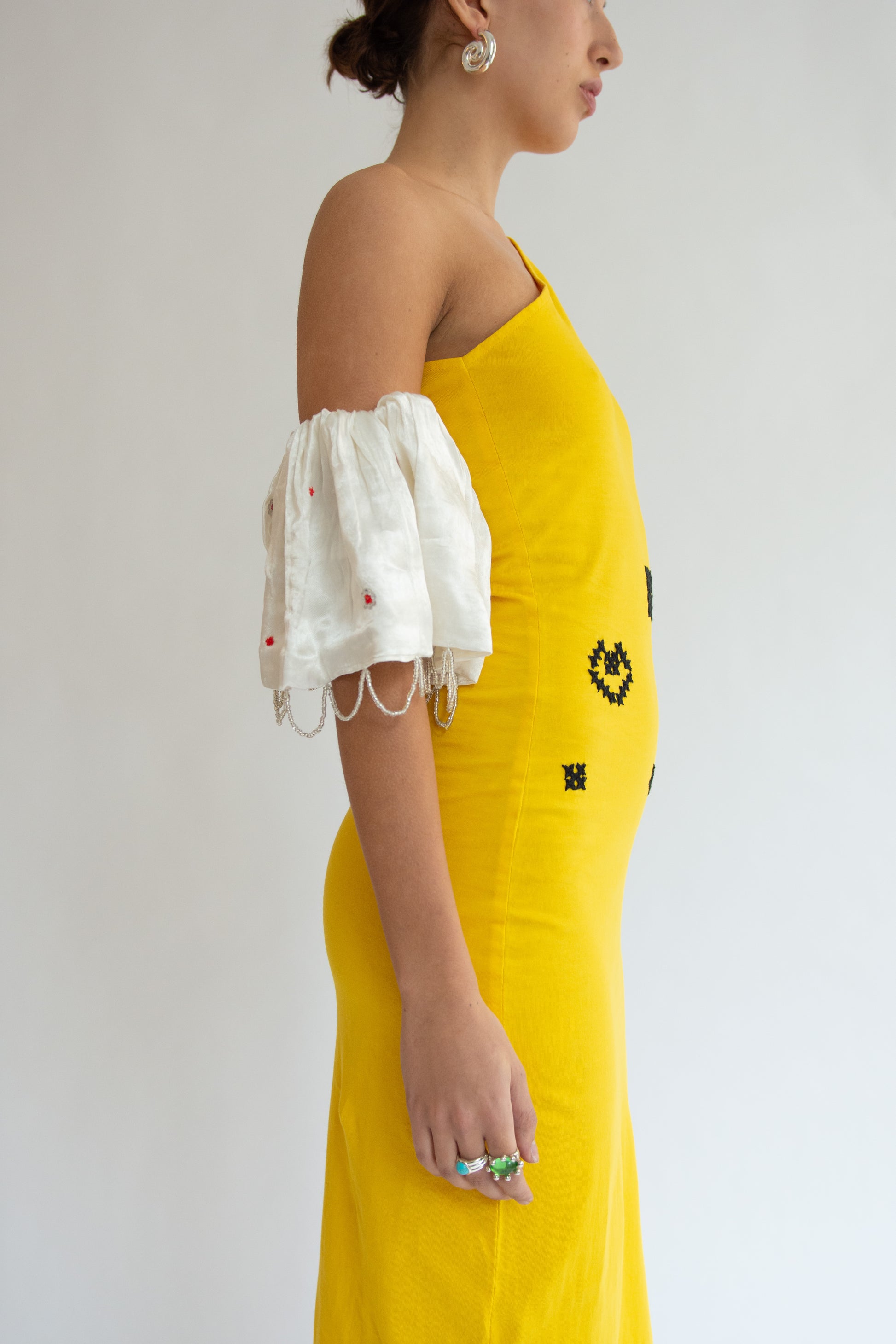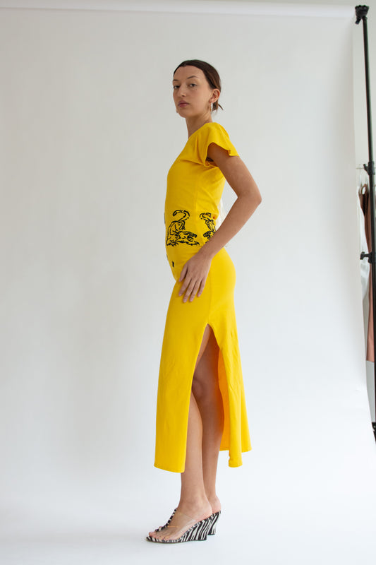 T-shirt Dress with Tiger Rabari Embroidery, Yellow/Black