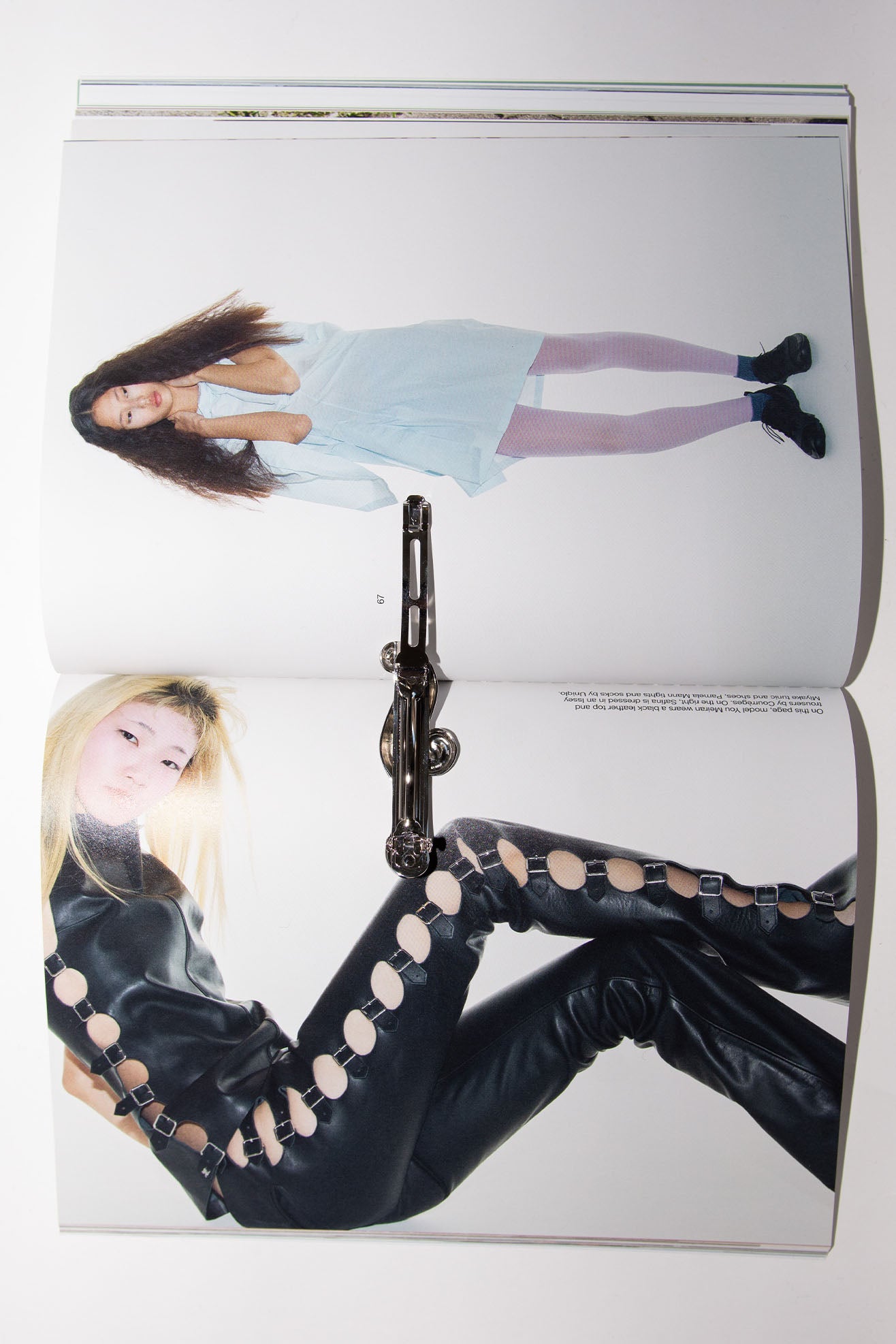 Hair clip in brass with platinum finish. Crocodile closure for secure hold.